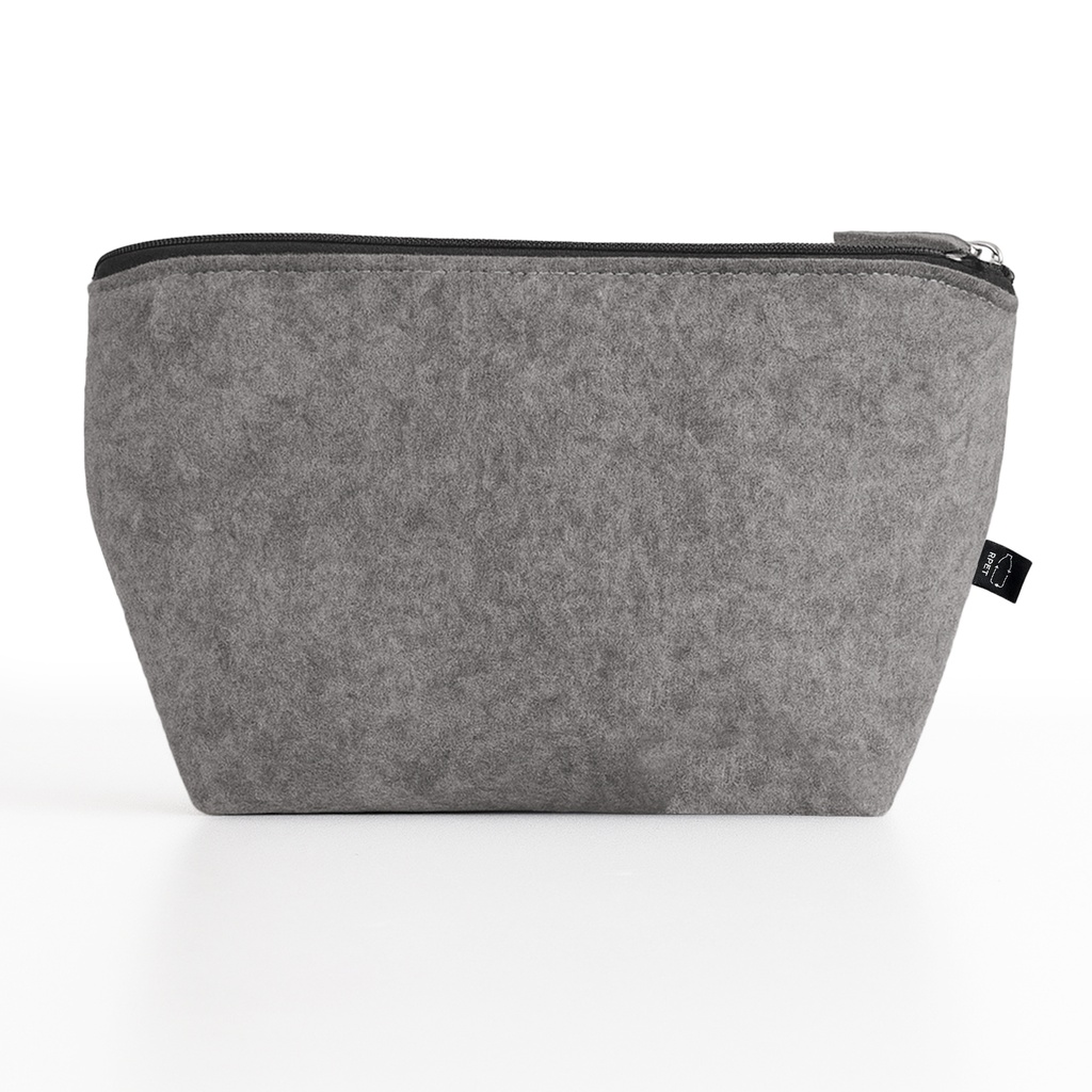 The Montana RPET Felt Pouch is an eco-friendly and practical promotional pouch designed to keep everyday essentials organised. Crafted from 2mm thick RPET felt made from recycled PET water bottles, this pouch offers a sustainable alternative for businesses seeking to promote their brand with purpose. Its sleek grey finish paired with a black zipper and discrete RPET label provides a modern aesthetic that appeals to environmentally conscious clients and staff alike. Ideal for bulk branded pouches, it perfectly combines style, versatility, and brand visibility for your next marketing campaign.