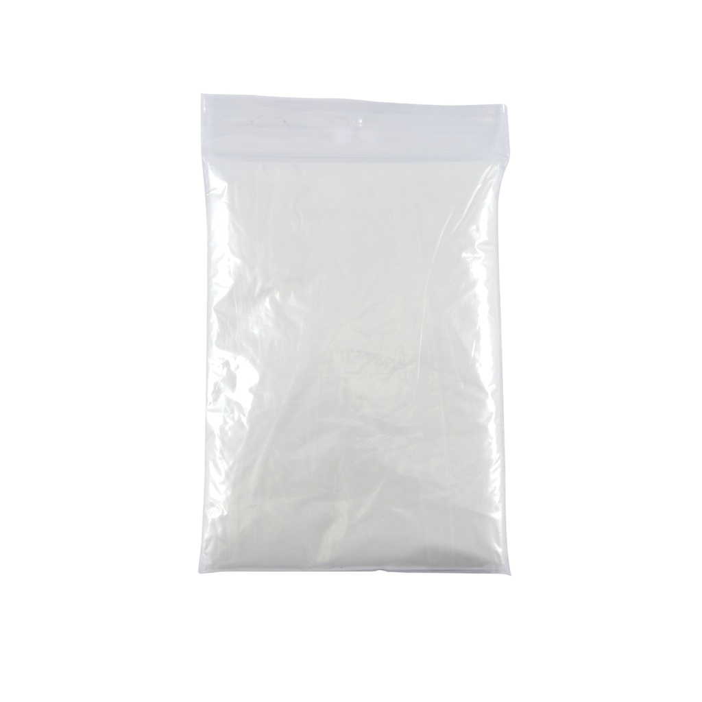 Poncho: 1250 x 1250mm (LxH) (approx); Poly bag: 155 x 105mm (LxH)
